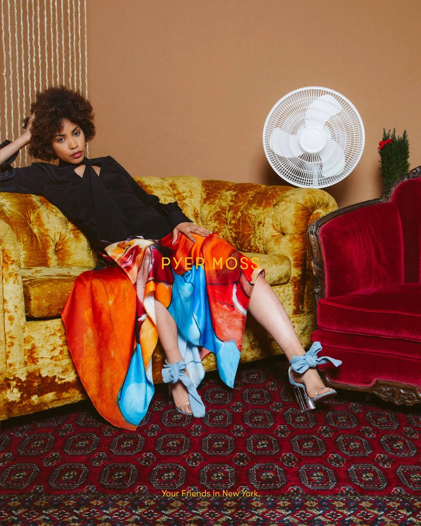 “Seven Mothers” tells the tale of a young boy at his mother’s funeral and the awe-inspiring women that stepped in to guide, affirm, nurture, love, support and raise him. Role models in athleticism, relationships, religion, fashion, business. The 8-minute film, starring top model Riley Montana, was written & directed by Director X (a forever legend if only for the ‘Bootylicious’ video) and was inspired by Kerby Jean-Raymond himself, who lost his own mother aged 7. The film incorporates pieces from the new Reebok by Pyer Moss collection, including silhouettes from the more luxury ‘Pyer Moss by Kerby Jean-Raymond’ main label. A striking open studio campaign shared earlier in April, portrays members of the local community posed up on a mustard crushed velvet sofa. The regality of it all.